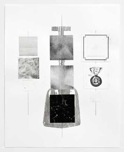 graphite, acrylic, photocopy, collage on paper